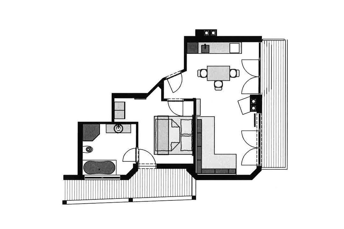 Im Schlafzimmer, über das Sie auf einen weiteren Balkon gelangen, steht Ihnen ein Safe zur Verfügung.